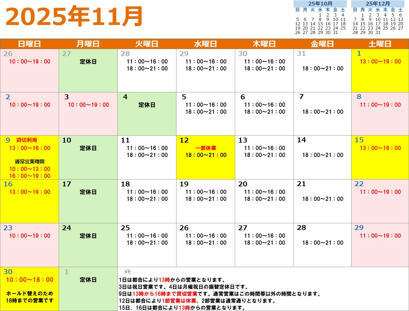 大変申し訳ございません。11月の営業カレンダーを掲載していませんでした。。